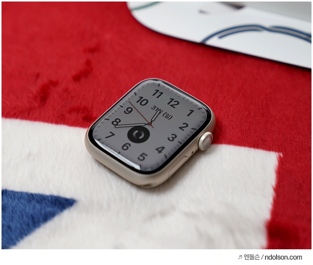 평소 큰 스마트폰을 좋아하고 큰 시계를 선호해서 무겁지만, 애플워치7세대 45mm 가 화면이 커서 선택하였습니다. 하지만 계속 착용해야 하니 무게에 민감하신 분은 선택 시 고민을 하셔야 합니다.