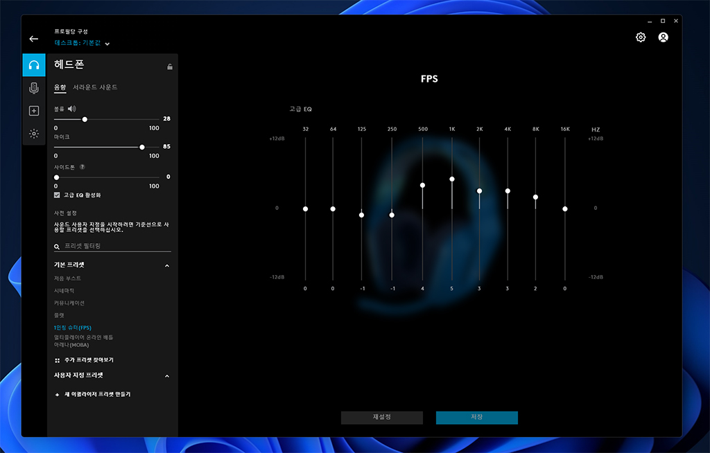 기본 프리셋을 어떤 것을 선택하느냐에 따라 음향이 달라져 게임을 즐기는 기분이 다른데요. 꼭 1인칭 슈팅(FPS) 모드로도 꼭 즐겨보세요. 깨끗하면서도 몰입되는 음악을 즐길 수 있습니다.