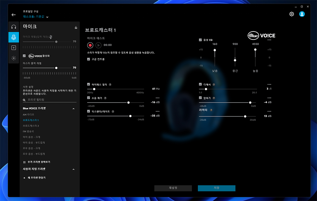 마이크 음질도 뛰어난데, BLUE VO!CE 최신 마이크가 탑재되어 있습니다. 게임할 때 마이크로 말할 때도 좋고, PC강의를 녹음할 때 사용해도 좋은 음질이었습니다.