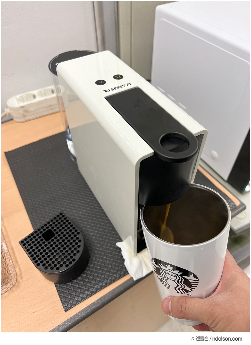 숏과 롱으로 커피를 선택할 수 있고, 네스프레소 캡슐을 사용할 수 있습니다. (당연한소리)