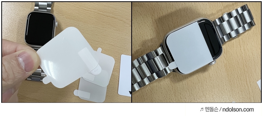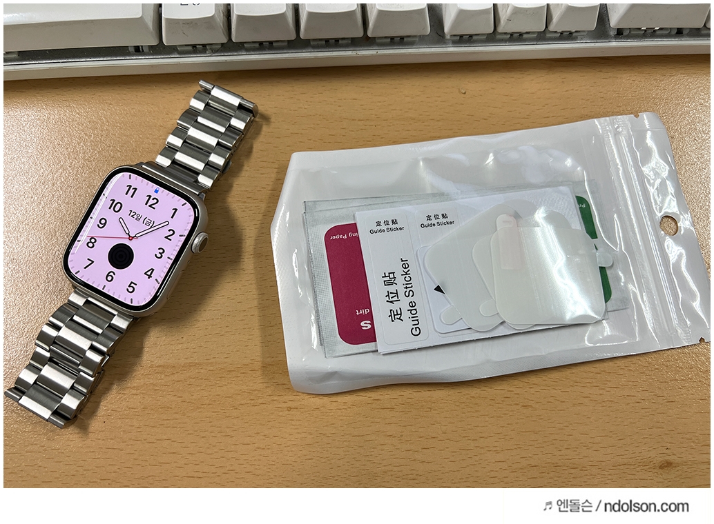 애플워치 액정보호필름은 부착하기 힘들것 같습니다. 영상을 보고 실패한 사람을 보았는데요. 기포가 자글자글 하고 삐딱해서 실패하는 영상이였는데요.