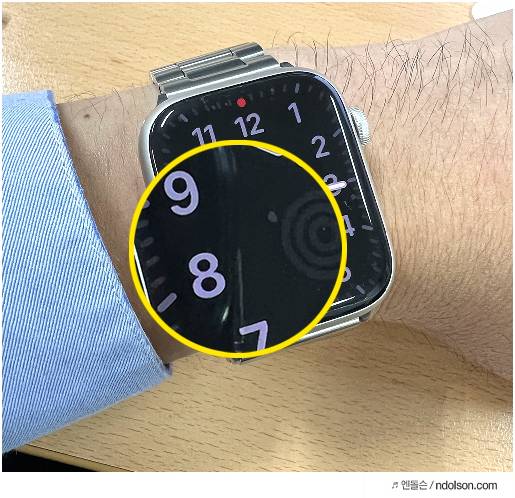 그리고 그 다음날 보니 기포는 흔적도 없이 빠졌습니다. 애플워치 7세대 액정보호필름은 분명 숨쉬는 필름이 분명합니다. 기포가 말끔하게 빠져서 깨끗하게 되었습니다.