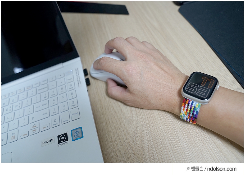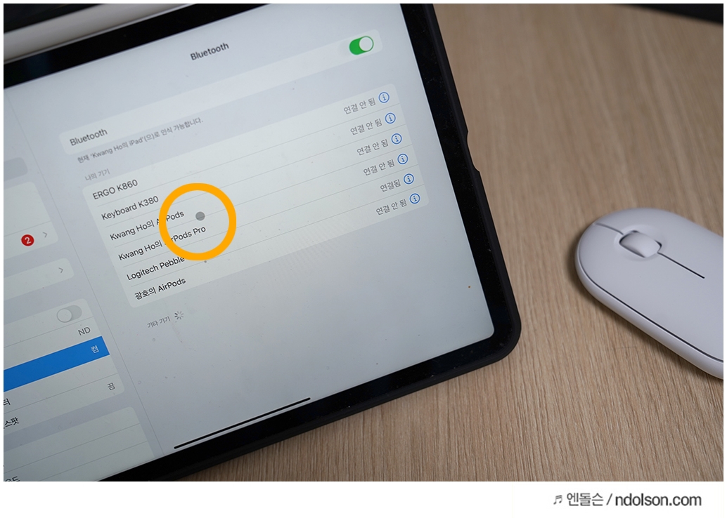 팁이라면 아이패드 프로에 블루투스로 연결하고 USB수신기는 노트북/PC 컴퓨터에 연결해 2개의 멀티페어링처럼 마우스 하단의 버튼을 눌러 2개의 기기를 연결을 변경해서 즐길 수 있습니다. 실제 이렇게 즐기는 데 편리합니다.