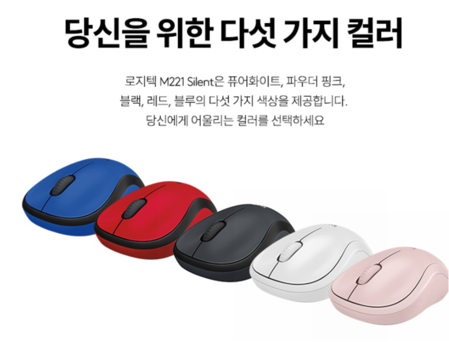 요즘은 감성적이면서 기능에도 충실한 무선 마우스가 인기 있는데요. 무소음으로 조용하게 방해 주지 않고 즐길 수 있는 로지텍 M221 Silent 가 블랙 / 블루 /레드에 이어 신컬러 퓨어 화이트, 파우더 핑크가 출시되었습니다. 특히 퓨어 화이트는 너무 이쁜데요.