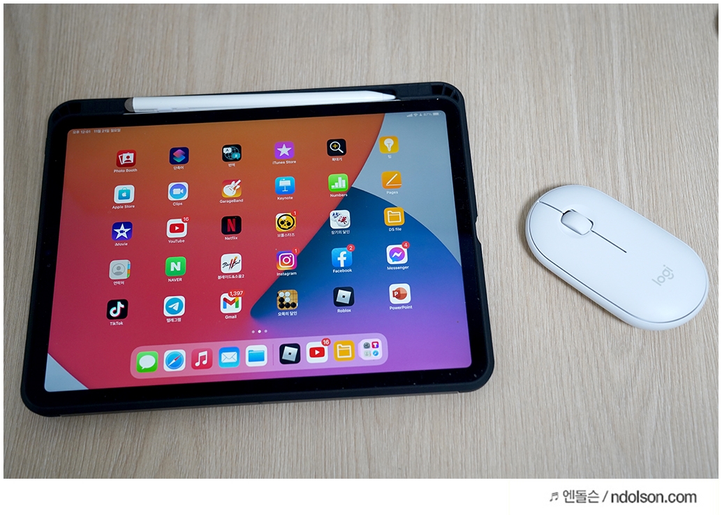 책상에 넘넘 아이패드 프로, 노트북, 데스크탑, 아이폰13 프로까지 다양한 디바이스가 자리를 차지하다 보니 무선 마우스, 무선 키보드가 편리해집니다. 특히 소음을 싫어하기 때문에 카페, 독서실 같은 공간에서는 조용한 무선 마우스를 더 선호하게 됩니다.