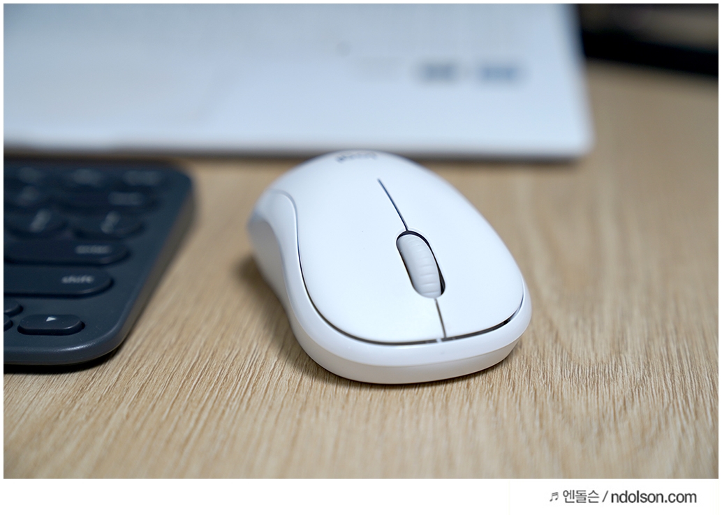퓨어 화이트 색상이라 감성 마우스라 깔끔한 느낌이 좋습니다. 또 로지텍 M221 Silent 는 기능에도 충실합니다.
