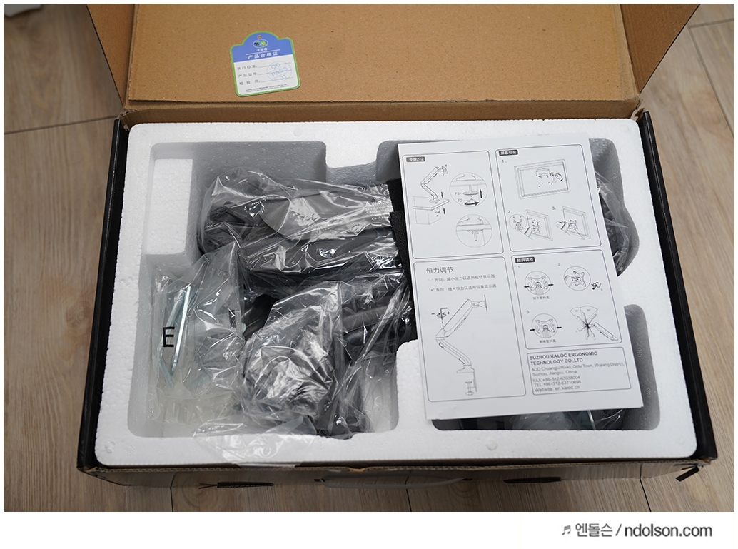 해외직구로 모니터암을 구매하였습니다. 가격은 3만원대로 저렴하니 크게 기대는 하지 않았습니다. 배송박스는 조금 찌그러졌지만, 괜찮은 상태였습니다.