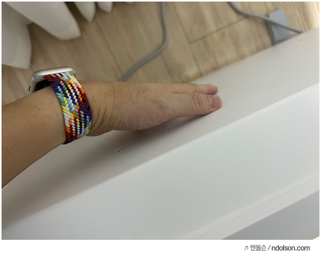 하지만 샤오미 미지아 전기난로 5세대 단점은 이렇게 켜진 상태에서도 전면에 빨강색 열선이 보이거나 하지 않아서 켜진건지 꺼진건지는 알기 쉽지 않네요. 측면을 보면, 전원버튼에 표시가 나와 알 수는 있습니다.
