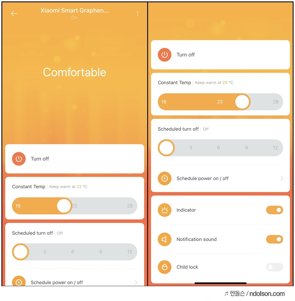 미홈 앱에서 할 수 있는 기능이 더 많습니다. 스케줄 설정으로 자동으로 켜고 끄고도 가능하고 차일드락도 가능합니다. 그외에도 다양한 설정이 가능하네요.