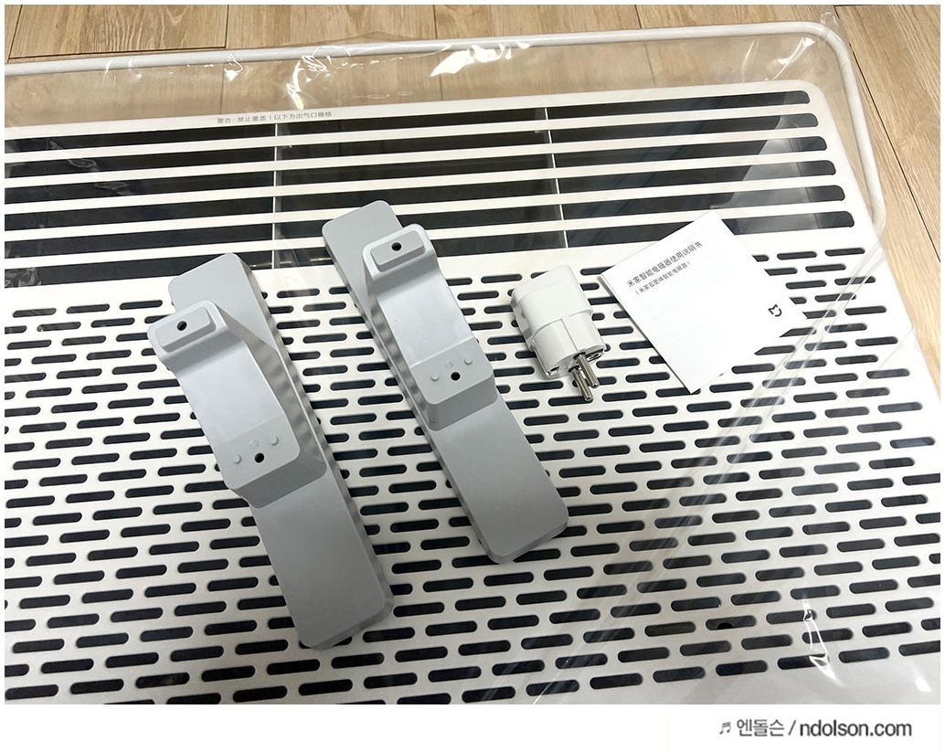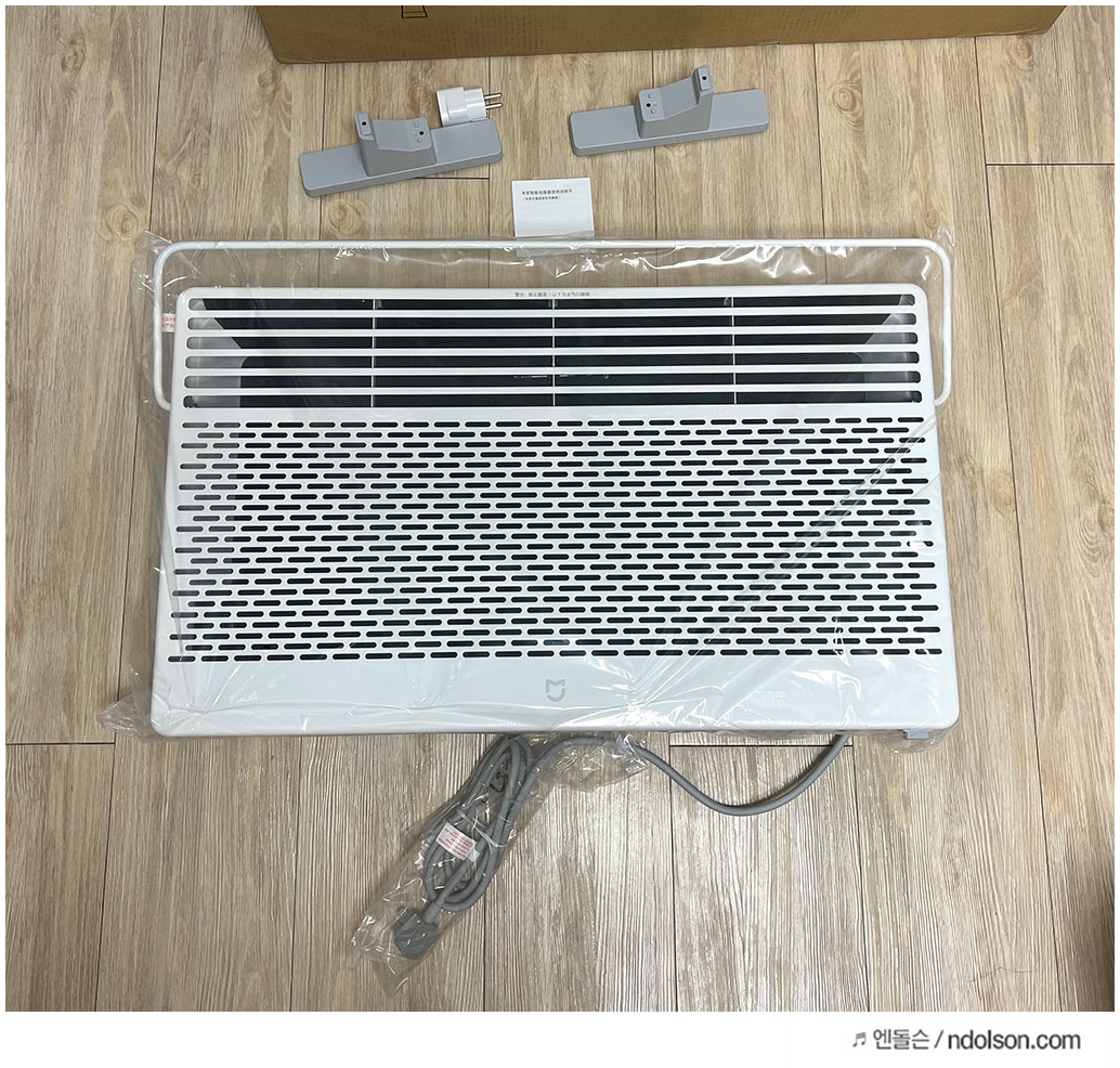 샤오미 미지아 전기난로 구매후, 받침대 조립이 필요합니다. 구성품을 보면, 한국에 전기에 맞게 220v 콘센트를 주며, 프리볼트라 맞습니다. 설명서는 중국어지만 그림을 보면 알 수 있었습니다.