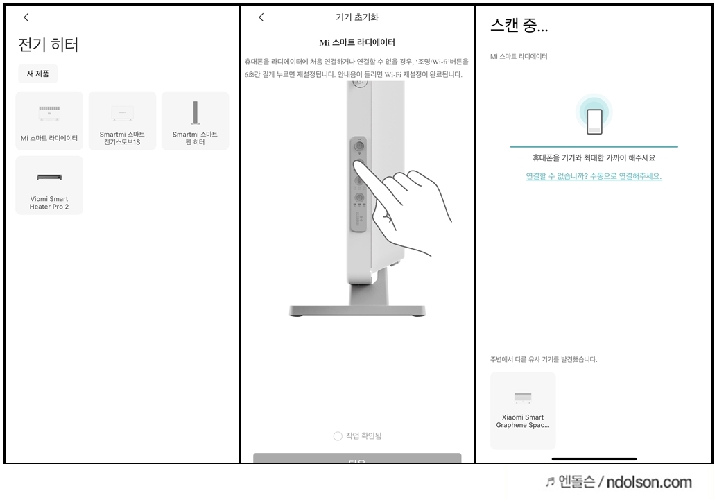 샤오미 전기난로 미홈 연결하기
