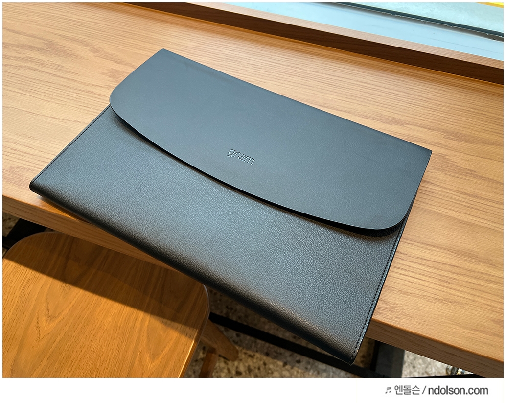 노트북 가방으로 고급 파우치가 제공됩니다. 가죽 재질로 멋지네요.