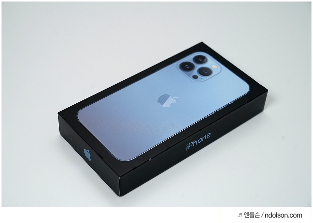아이폰13 PRO MAX 256GB 시에라블루 색상으로 구매하였는데요. 색상이 너무 이쁩니다. 아이폰 13시리즈는 기본형(6.1인치), 미니(5.4인치), 프로(6.1인치), 프로맥스(6.7인치) 4종으로 출시되었는 데, 무겁더라도 배터리가 오래가는 맥스로 구매하였습니다.