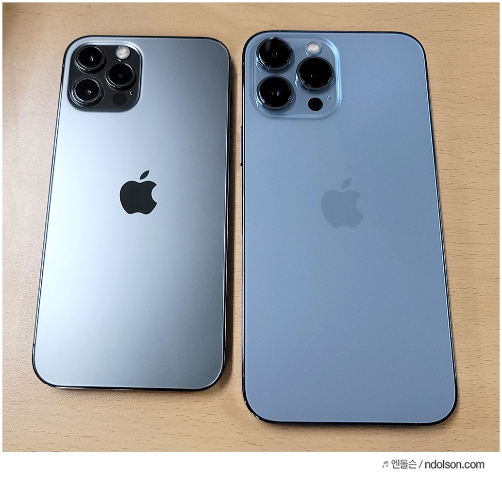 아이폰12와 아이폰13 비교를 해보면, 렌즈센서의 차이를 육안으로도 알 수 있습니다. 물리적으로도 아이폰13이 망원이 77mm초점거리로 3배 커졌으며 차이가 있습니다. 아이폰12는 안되지만 아이폰13은 2cm에서 접사가 가능하다는 점입니다.