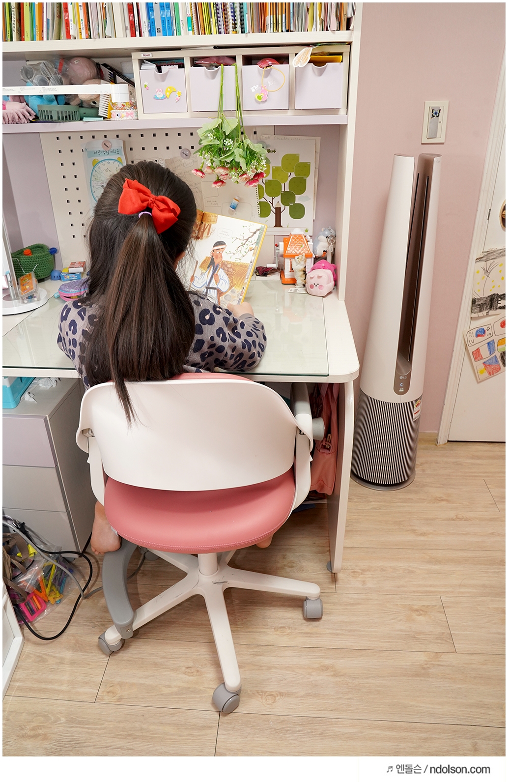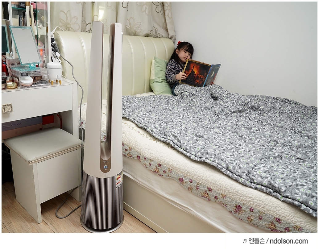 공기청정기가 있지만, 난방도 가능한 부분에서 차별화가 있습니다. 거실에는 이미 LG 퓨리케어 360 공기청정기가 자리를 차지하고 있지만, 원하는 공부방에 난방과 공기청정을 고려하는 측면에서 만족하시리라 봅니다.