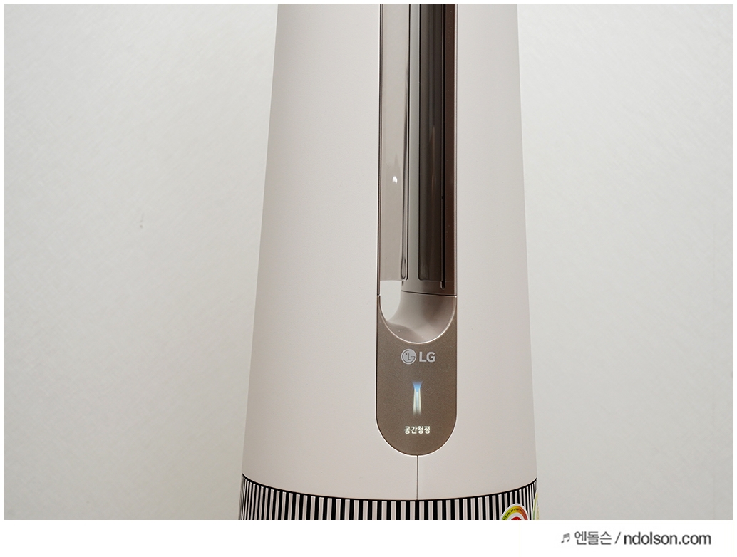 LG 퓨리케어 에어로타워는 디자인이 정말 이쁜데요. 글렌디 디자인 (Glendy Design)으로 바람이 부는 협곡에서 영감을 받았다는 데, 양쪽의 기둥이 마치 협곡처럼 멋지게 솟아 있고 그사이로 시원한 바람이 불어옵니다.