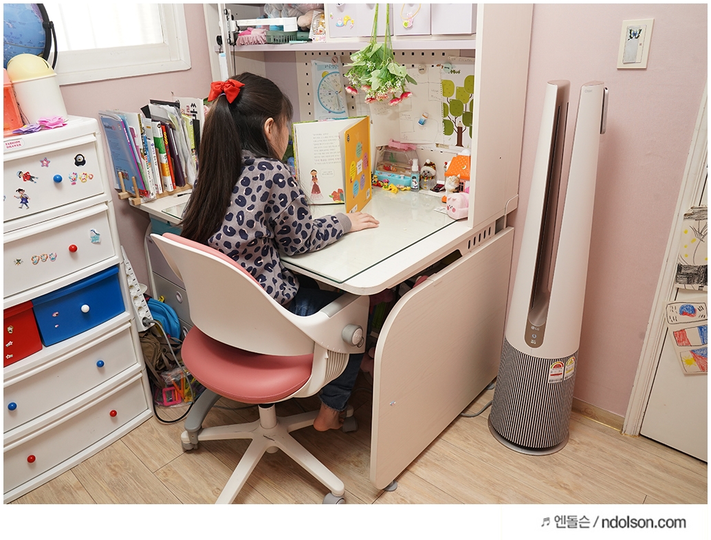 공기청정기가 있지만, 난방도 가능한 부분에서 차별화가 있습니다. 거실에는 이미 LG 퓨리케어 360 공기청정기가 자리를 차지하고 있지만, 원하는 공부방에 난방과 공기청정을 고려하는 측면에서 만족하시리라 봅니다.