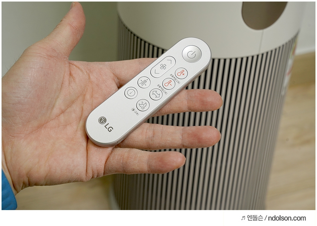 리모컨을 쓰다 보면, 어디로 갔지? 항상 찾게 되는데요. LG 에어로타워는 자석 타입으로 옆에 리모컨을 부착할 수 있어 상당히 편리했습니다.