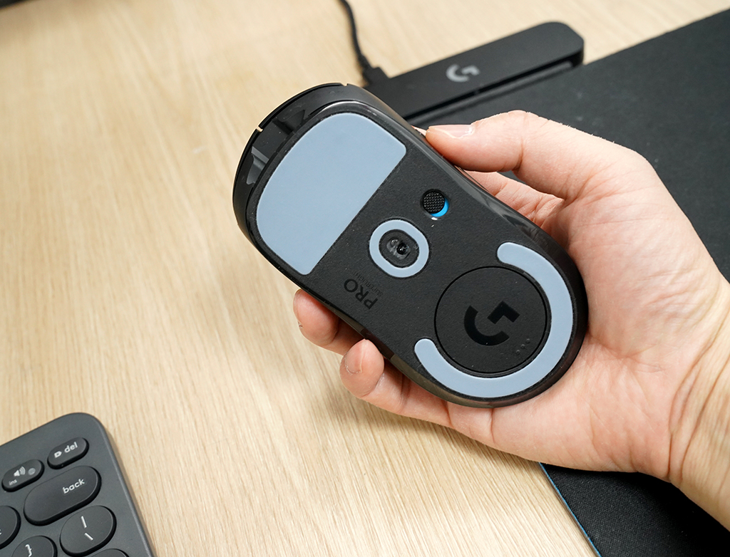 필자는 로지텍 파워플레이로 무선충전을 하여 사용하고 있는데요. POWERPLAY 호환되는 제품이라 무선 충전이 상당히 편리합니다. +또한, LIGHTSPEED 무선 기술로 유선과 같은 반응속도와 끊기지 않는 연결이 가능하고, 파워플레이가 없다 해도 한번 완충 시 최대 70시간까지 사용할 수 있는 뛰어난 배터리 효율을 가지고 있습니다. 하단에는 USB 수신기를 보관할 수 있는 공간도 제공됩니다.