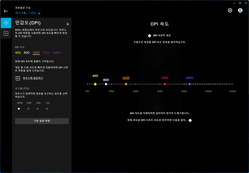 마우스의 DPI는 최대 25,600 DPI까지 설정이 가능합니다. 나의 손이 빠르고 적을 정확히 겨눌 수 있다면 배틀그라운드에서 HERO 25K 센서로 타깃을 쏘아봐야겠죠?