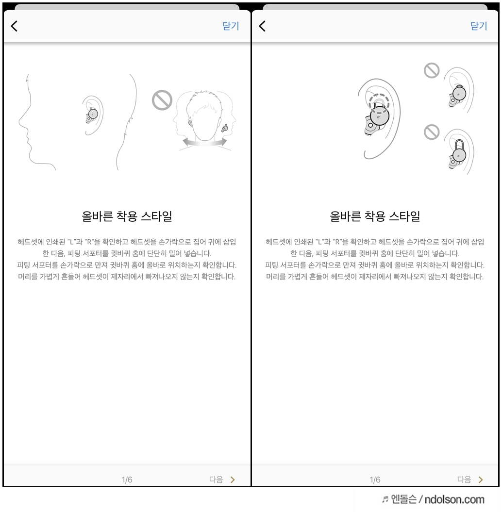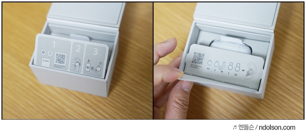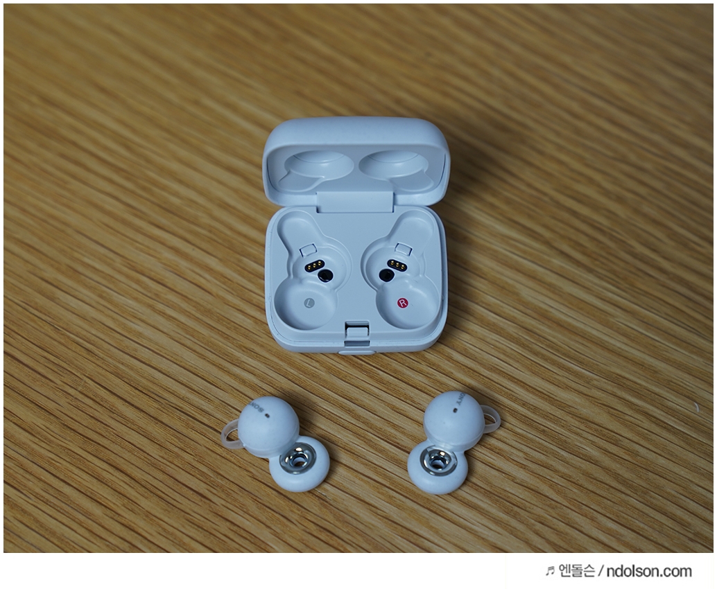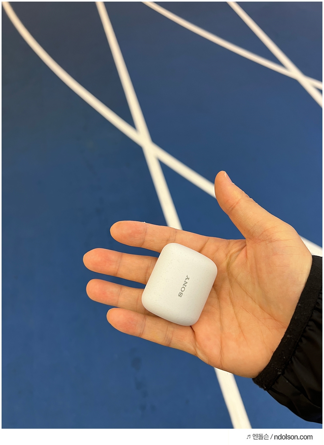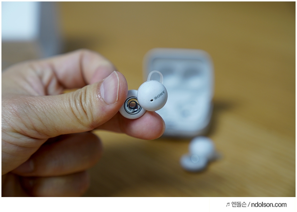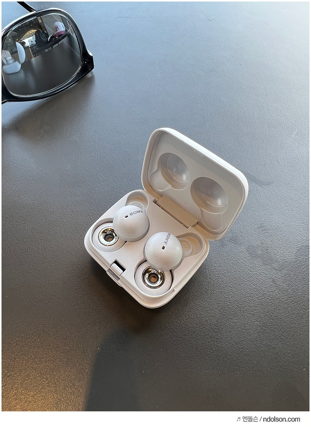 이어팁 크기에 따라 적절히 착용하면 누구나 귀에서 쉽게 빠지지 않고 사용할 수 있습니다. 처음에는 동그란 도넛 모양에 익숙하지 않을 수 있습니다. 또 오픈형 이어폰인 소니 버즈링크는 귀에 꽉 뀌지 않아 장시간 착용해도 귀와 머리가 아프지 않은 점도 좋았습니다.