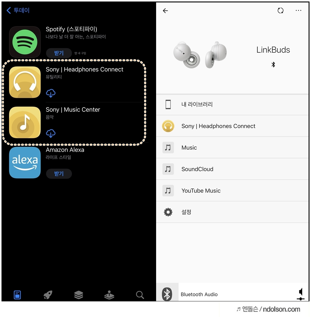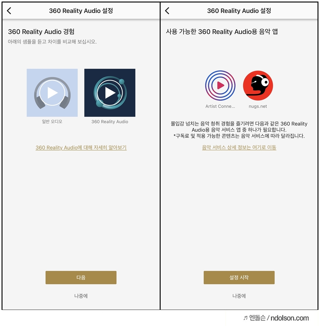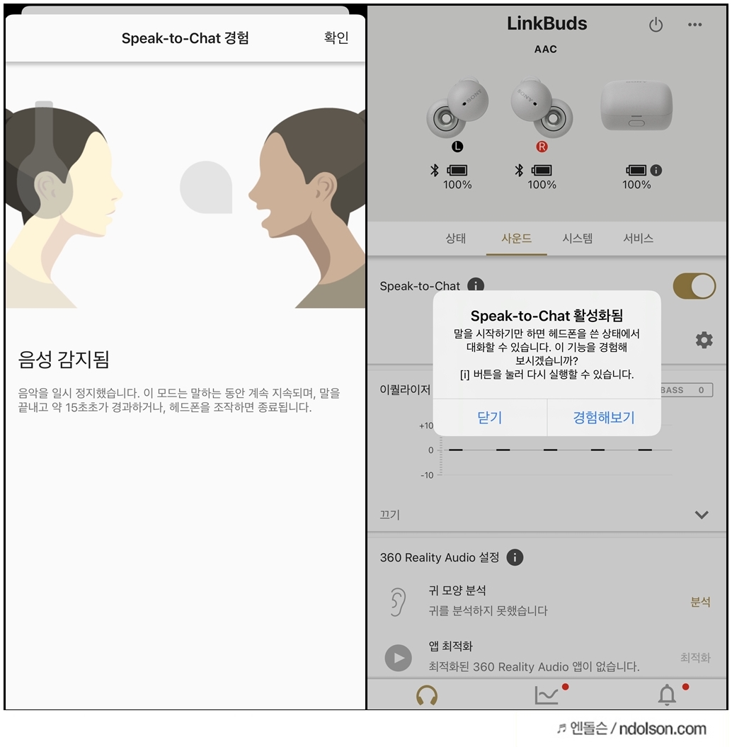 소니 링크버즈는 Sony Headphones connect 앱과 Music Center 앱을 설치하여 상세한 설정이 가능합니다. 360 리얼리티 오디오 경험도 가능한데, 세부 설정은 정말 최고인 오디오 전문 앱입니다.