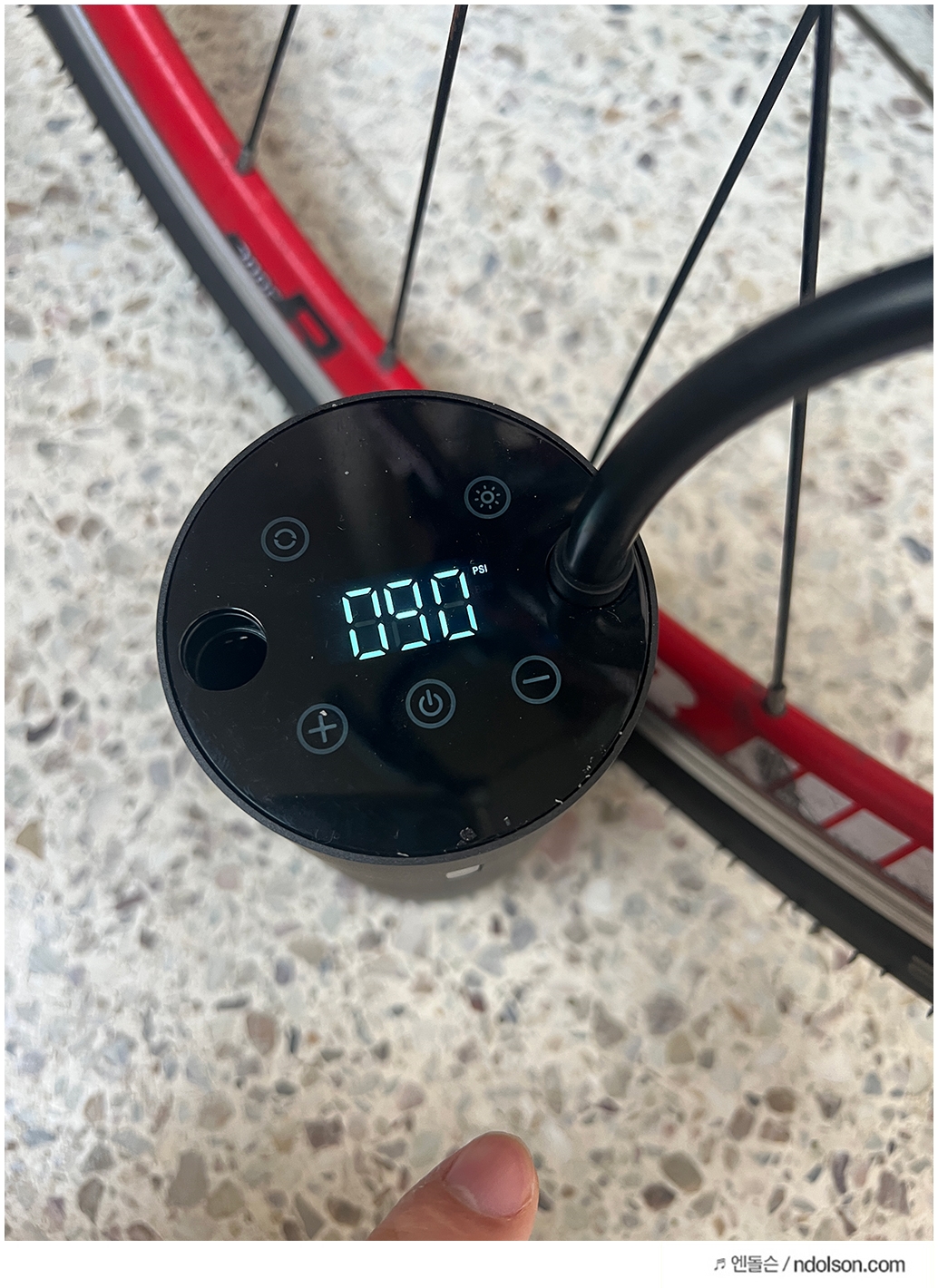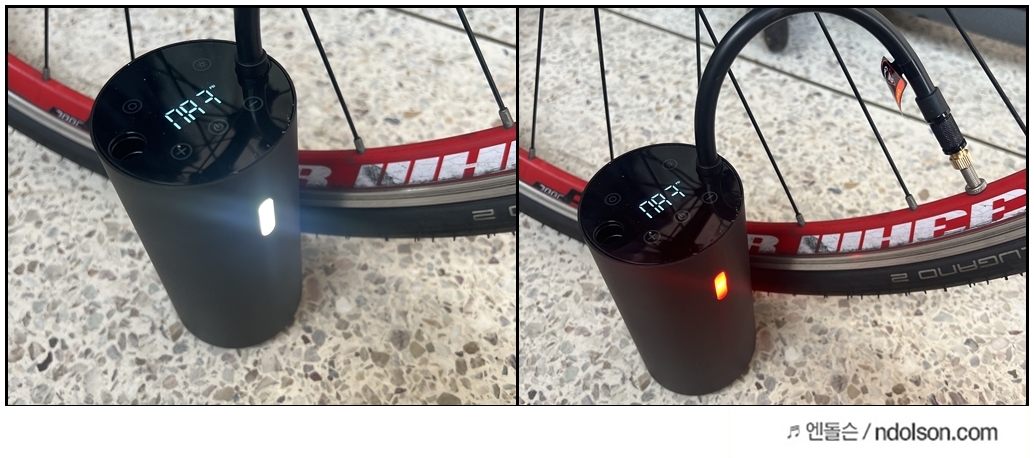 써본 첫소감은 세상 좋아졌구나! 알아서 자전거 타이어 PSI에 맞게 바람을 넣어줍니다. 노즐이 여러가지라 자동차 타이어, 축구공 등 다양한 제품에 사용할 수 있습니다.