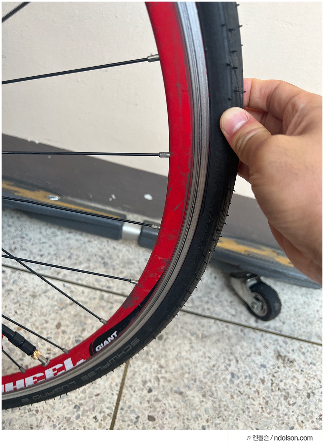 너무 믿지 마시고(?) 타이어를 눌러 적당한지 확인합니다.