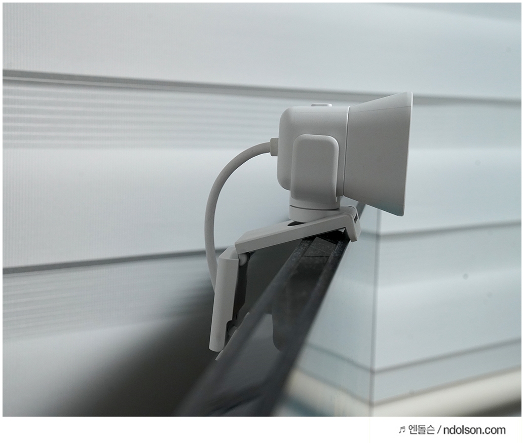 웹캠은 기본적으로 모니터에 거치하는데, 상단부가 위아래 움직여 추가적인 각도 조절도 가능합니다. 스마트 오토 포커스로 얼굴을 따라가면서 정확히 초점을 자동으로 맞추어 줍니다. 화각은 78도로 촬영이 가능합니다.
