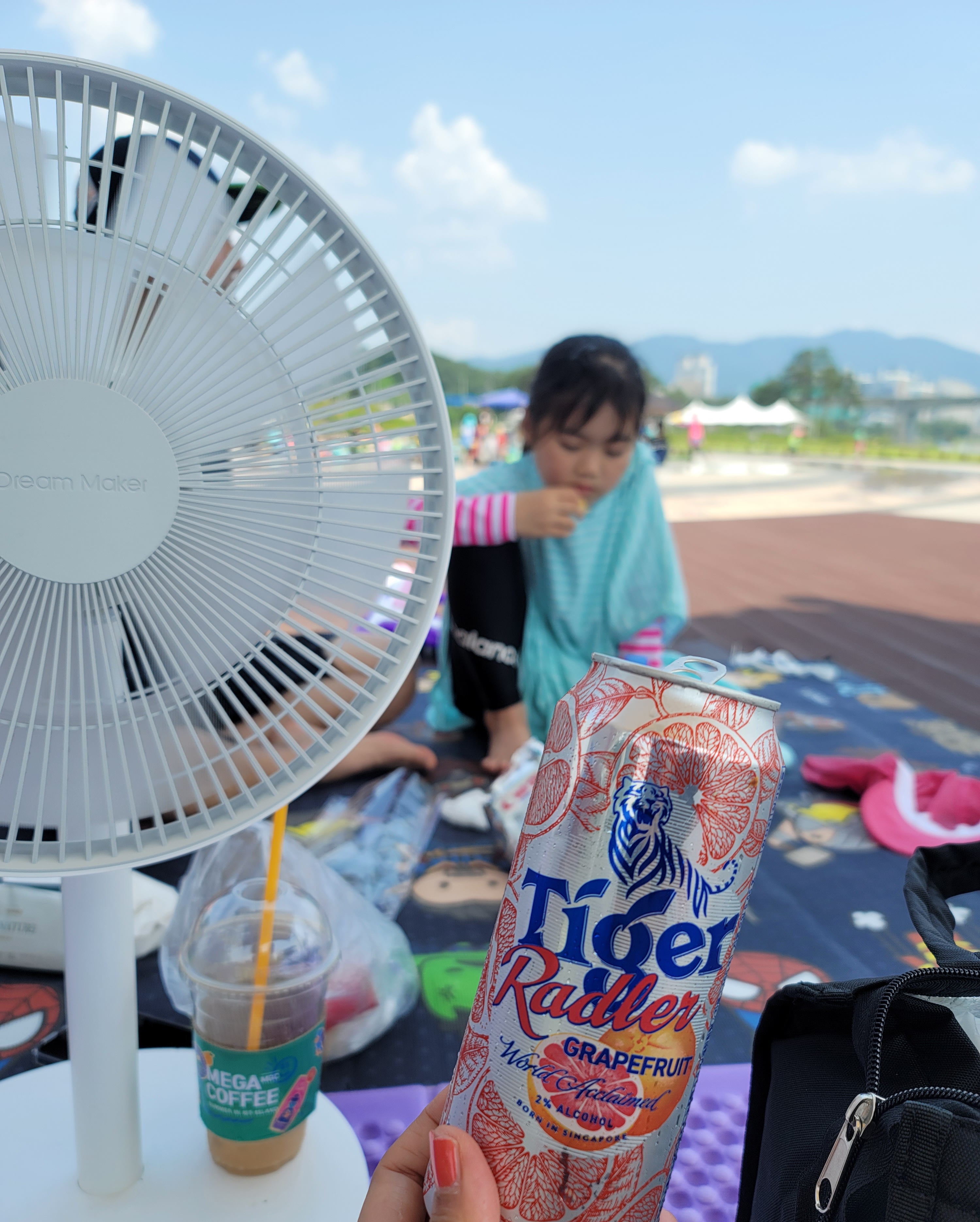 이번에 여름에 캠핑처럼 간단히 한강 물놀이를 다녀왔습니다. 한강 텐트에서 치맥하면 너무 좋죠. 그런데 요즘 날씨가 좀 덮나요?