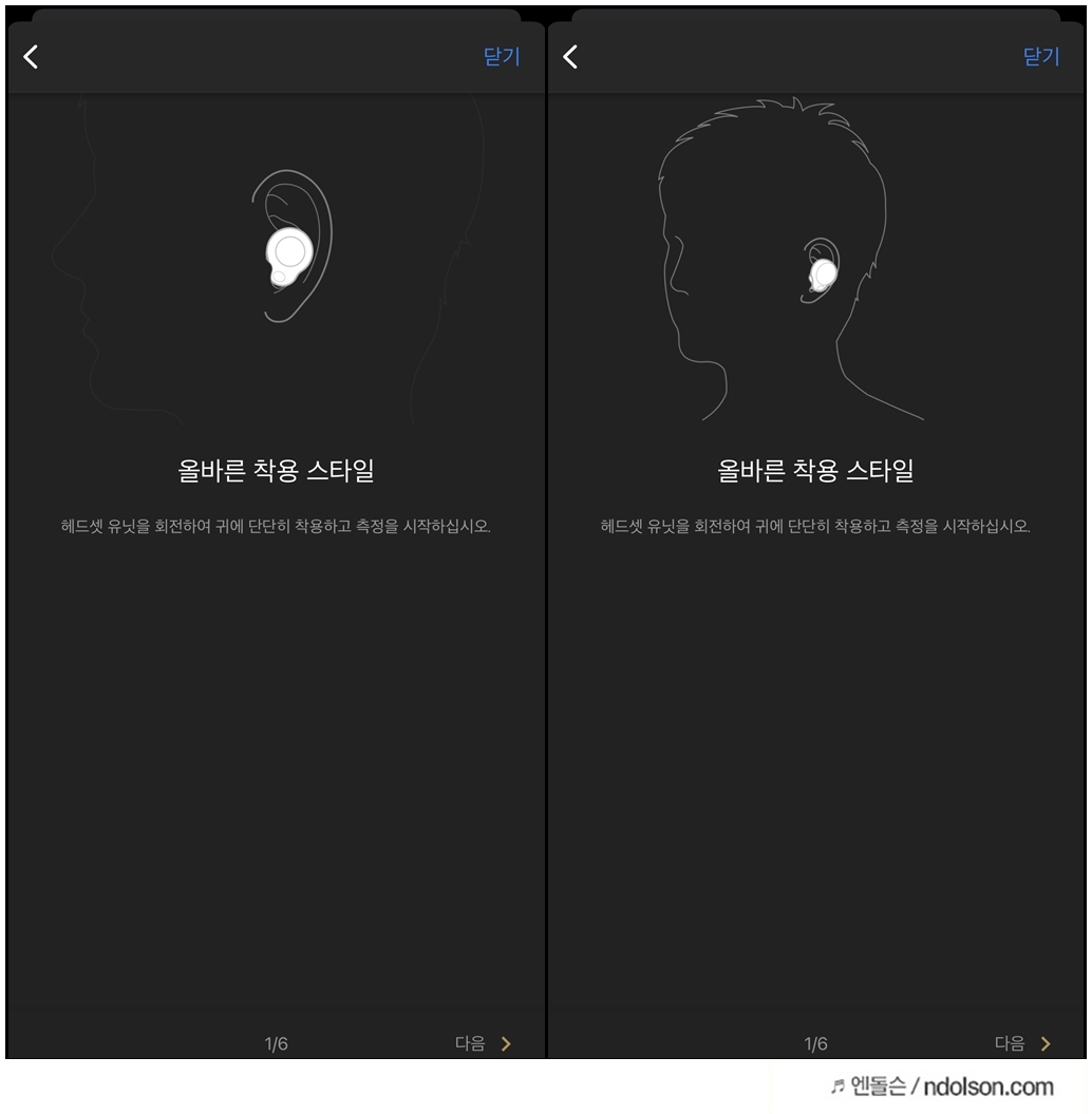 올바른 링크버즈 S 사용법은 위와 같습니다. 위/아래 구분이 가장 중요한데 거꾸로 귀에 넣으면 맞지 않으니 링크버즈 보다는 착용이 어렵지 않을 겁니다.