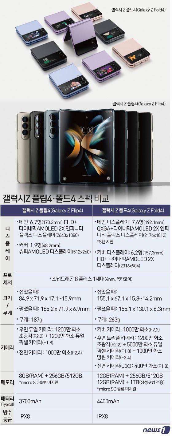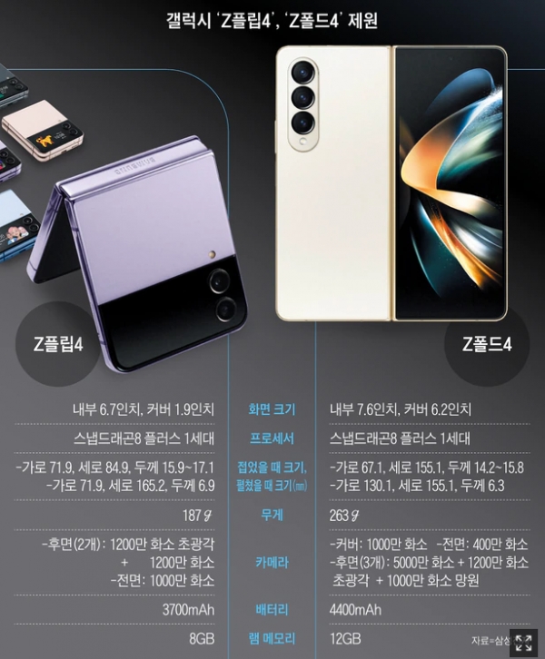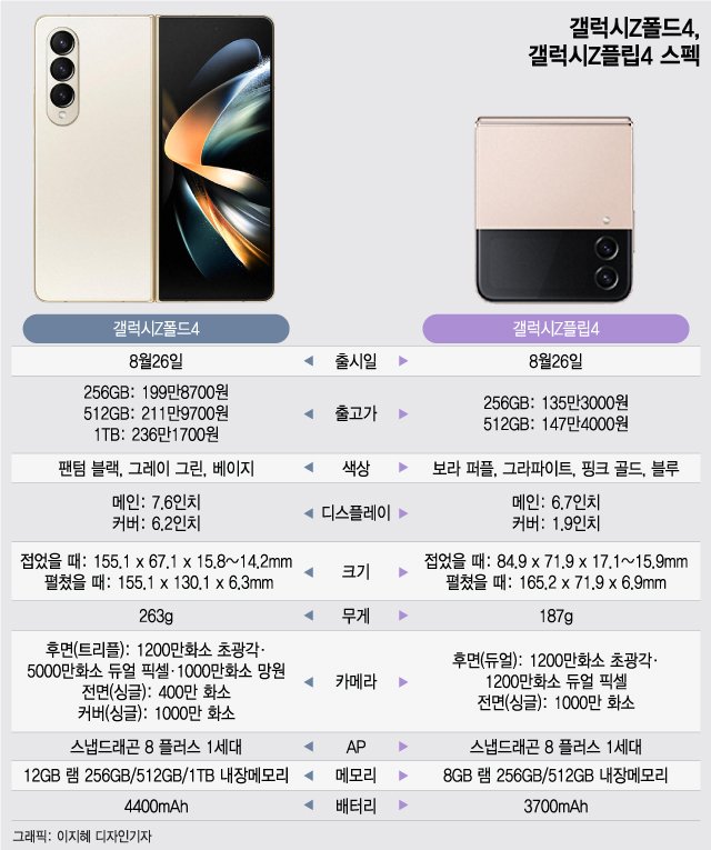 갤럭시 Z플립4 vs Z폴드4 스펙비교