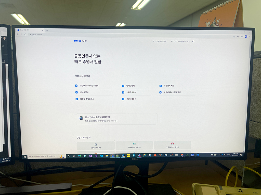 건축물대장, 국가기술자격증 등 토스 주민센터를 이용하면 각종 서류를 쉽게 발급할 수 있네요. 정말 불편한 각종 공인인증서 보안 프로그램이나 키보드 보안 프로그램 등이 설치되는 시간과 설치가 되지 않아 편했습니다. PC 컴퓨터에 불필요한 게 설치되는 게 싫은 필자의 경우, 이점이 무척 좋았습니다.