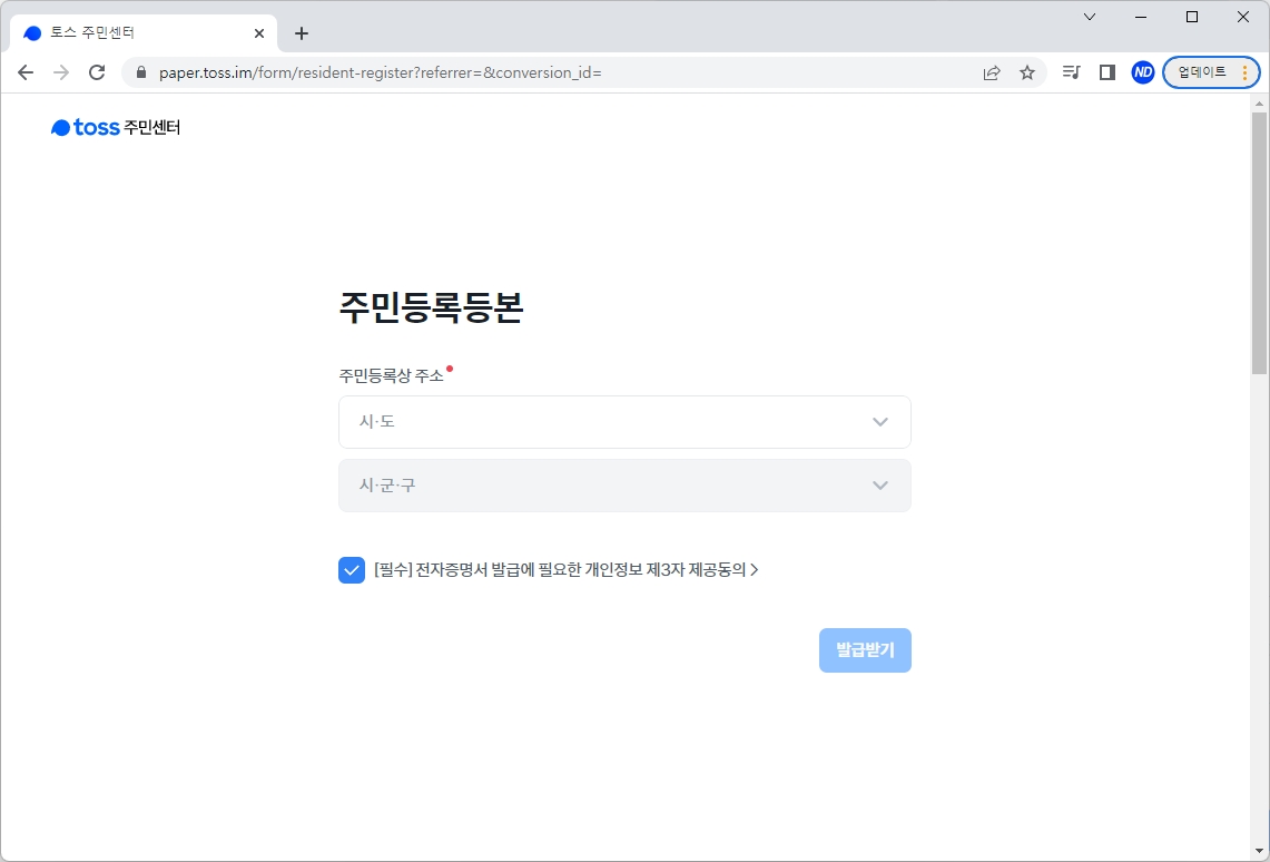 인터넷 무료 발급으로 손쉽게 공동인증서 없이 빠르게 증명서를 발급해보겠습니다. 토스 주민센터에서는 정부24와 달리 공동인증서도 필요 없이 1분만에 빠르게 발급할 수 있어 편리합니다.