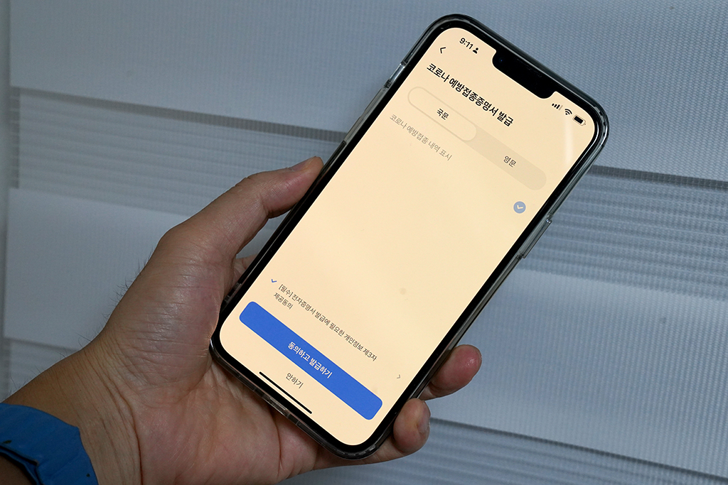 코로나 예방접종증명서 발급을 처리하고 있네요!