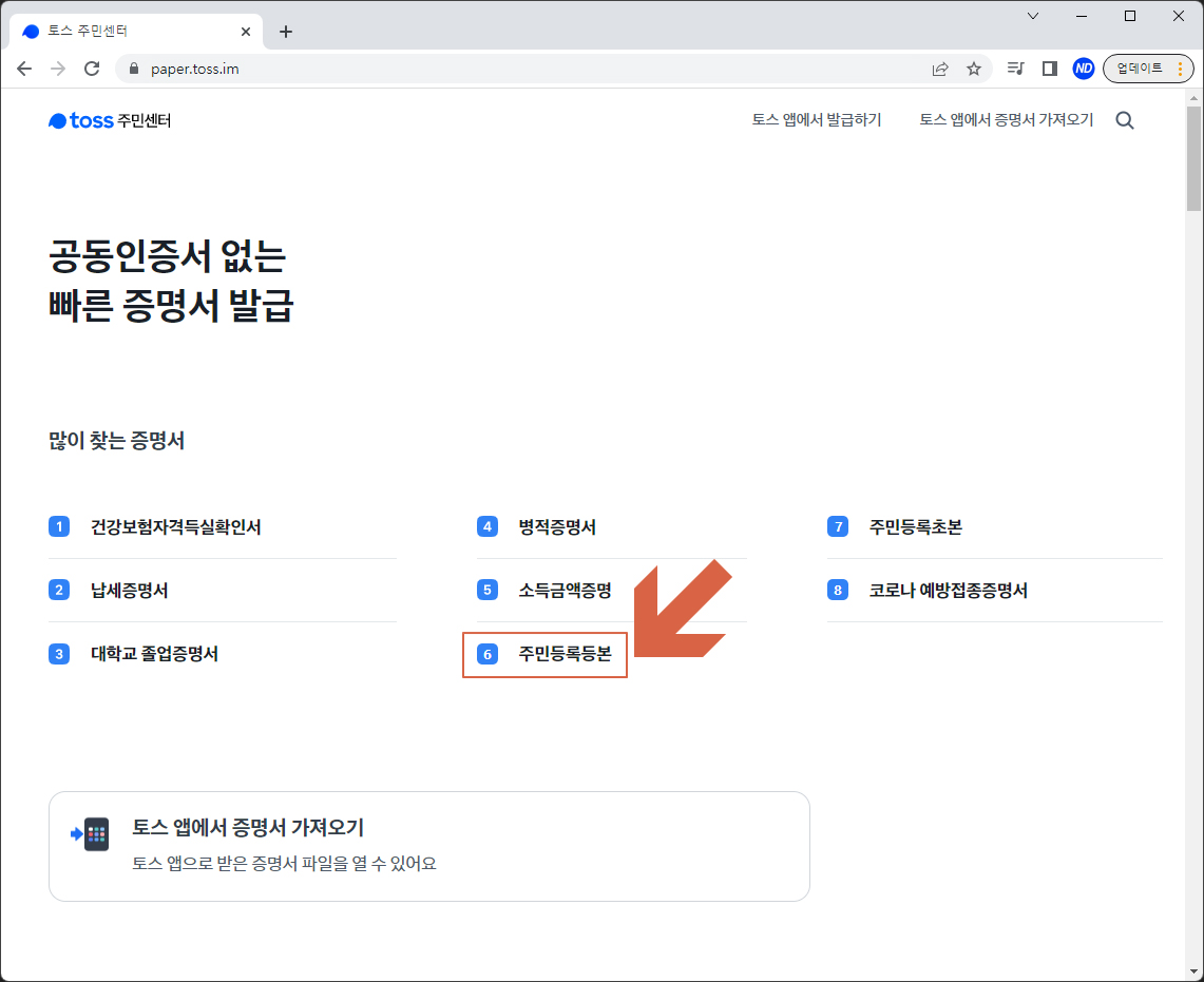 토스 주민센터에서 건강보험자격득실확인서, 주민등록등본/초본 등 쉽게 서류를 발급할 수 있습니다.