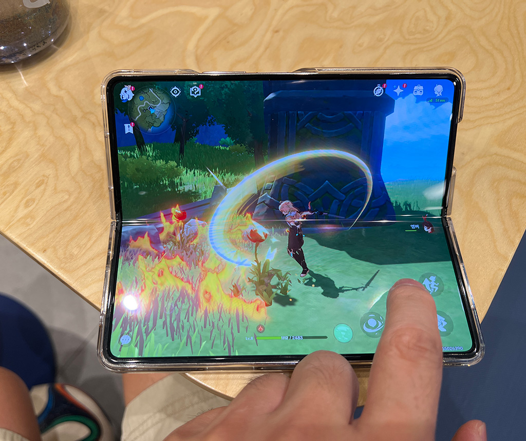 카페에서 갤럭시 Z 폴드4로 원신 게임을 즐겨보았습니다. 오로지 게임만 집중할 수 있게 소니 링크버즈S의 노이즈캔슬링은 편하네요.