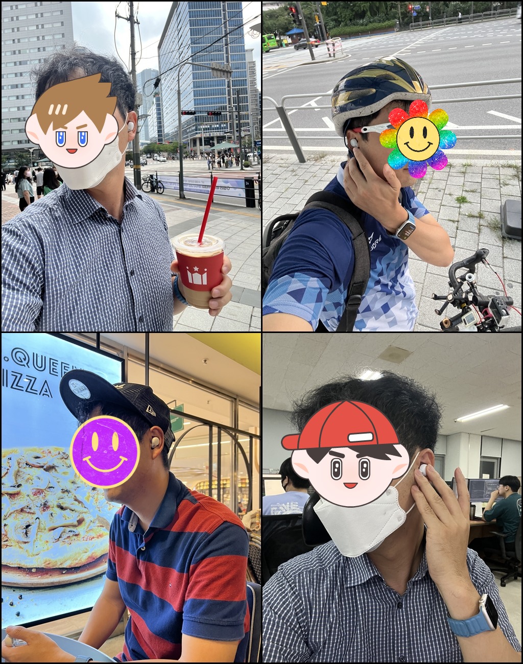 길거리를 걷거나 자전거 운동, 카페에서 대화하거나 음악을 듣고, 회사에서 업무를 하면서도 착용을 계속해보았습니다.