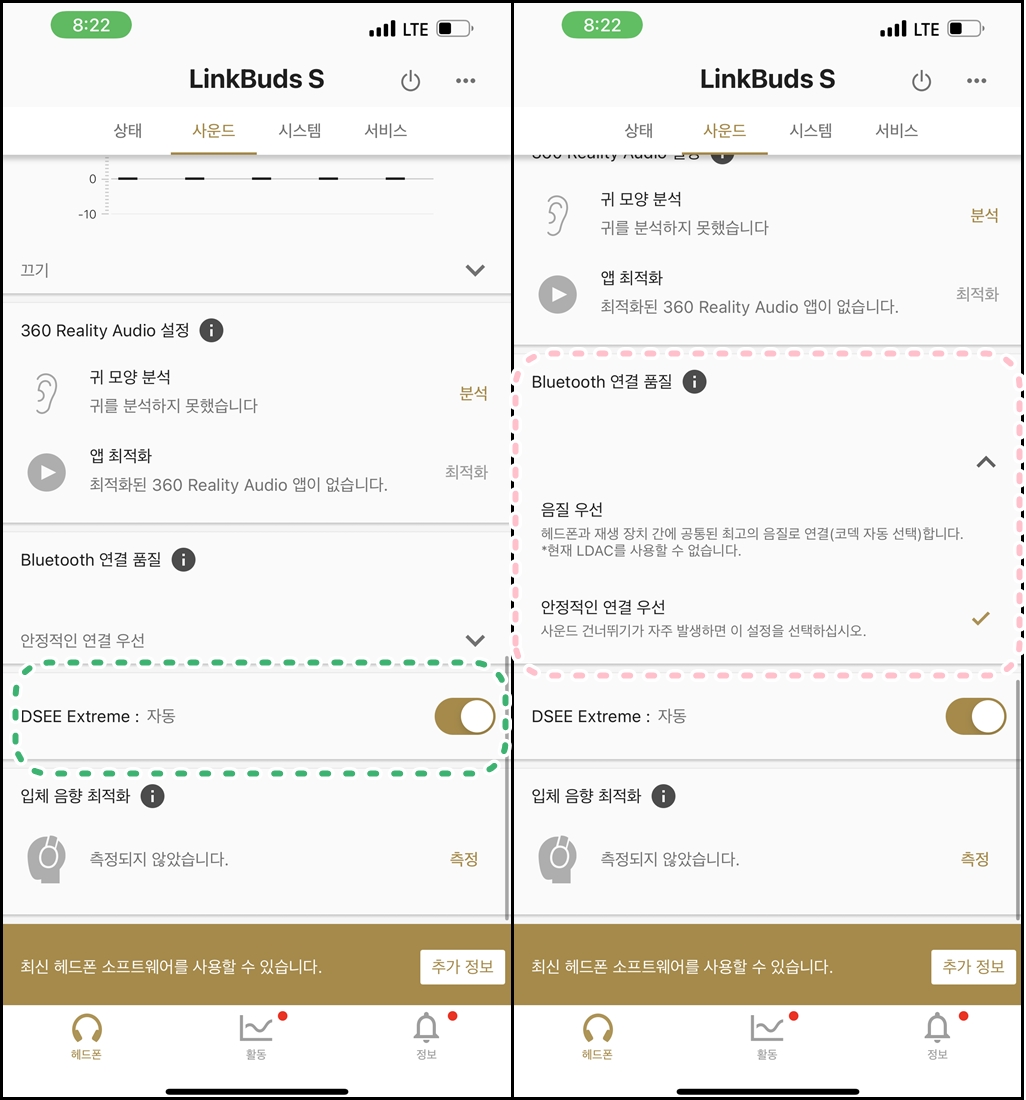 DSEE는 Digital Sound Enhancement Engine, 디지털 음향 강화 엔진의 줄임말입니다. 손실 압축된 음원에서 손상된 영역을 복원하는 기능이라고 하니 업스케일링을 해줍니다. 보다 좋은 음질의 음원 감상을 가능하게 해 주죠.