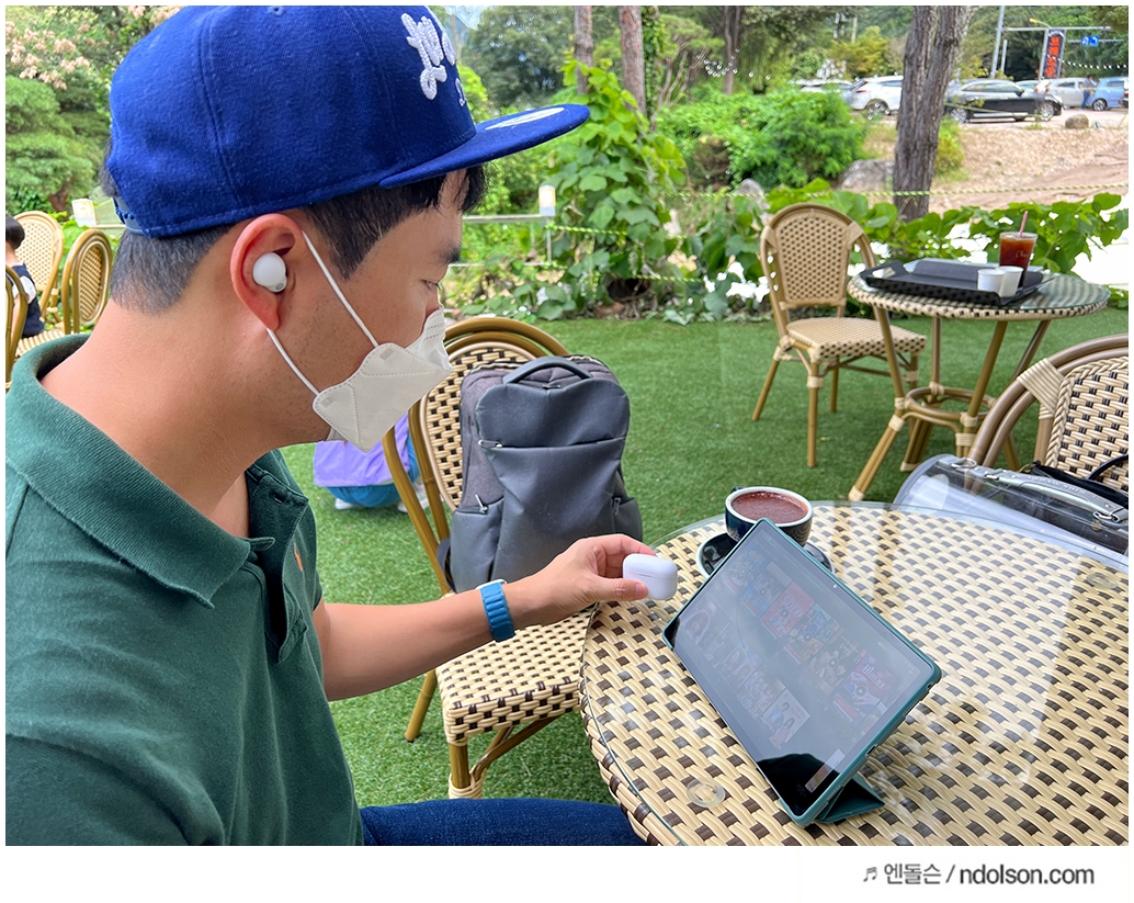 링크버즈S는 지하철, 카페에서 집중하면서 동영상, 음악을 감상하기 정말 좋습니다. 터치 한 번으로 주변 소리 듣기와 노이즈 캔슬링을 오갈 수 있어 간편합니다. 어디서나 편하게 집중하기는 링크버즈S가 훨씬 좋았습니다.