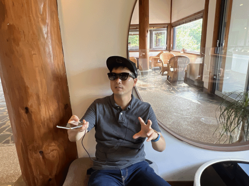 선글라스 안쪽에 교정 렌즈가 들어있어 시력교정을 하고, 증강현실을 체험했는데요, 2개의 1080P FHD Sony Micro-OLED 디스플레이로 보여주어 놀라웠습니다.