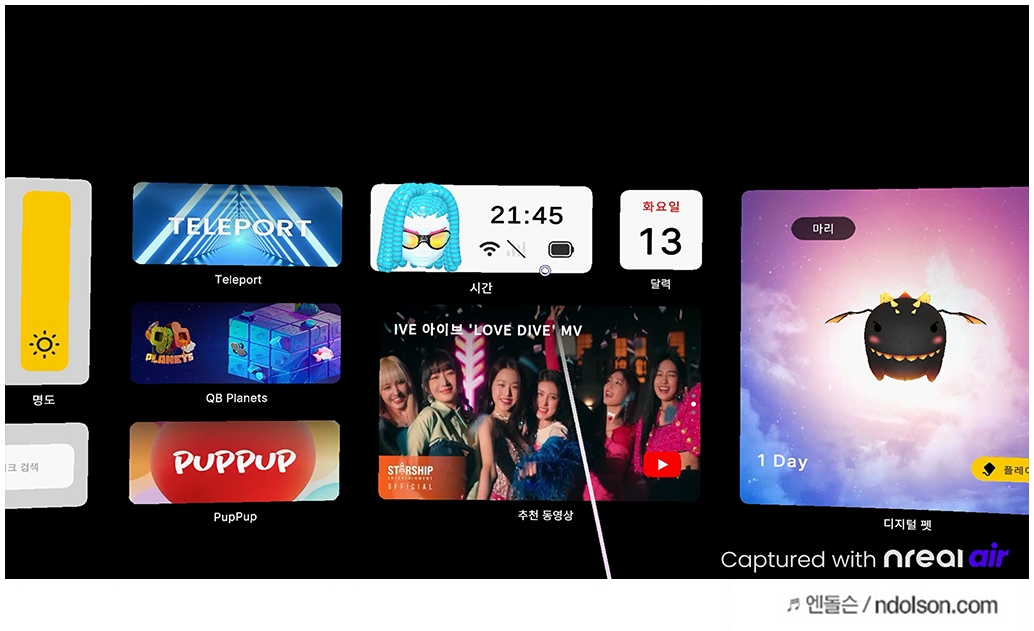 가장 놀라웠던 것은 Nreal Air (엔리얼 에어)의 화질이었습니다. 필자가 이전에 사용하던 VR글래스 보다 약 2배에 고해상도인 49 PPD(Pixels per degree)의 해상도라 선명한 화질로 즐길 수 있었습니다.