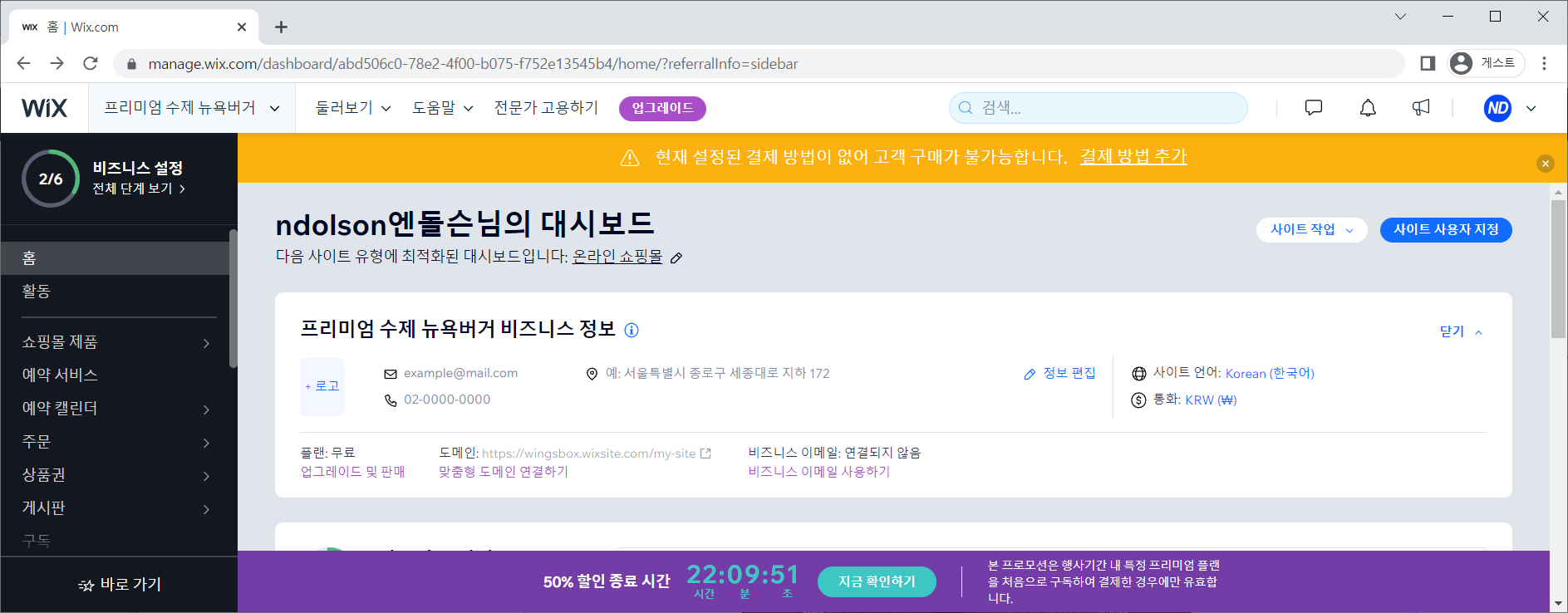 쇼핑몰 제작을 위해 Wix 쇼핑몰 솔루션으로 연습 삼아 만들어보았지만, 쇼핑몰에 필요한 회원가입부터 결제 페이지 및 정산까지 모든 것을 갖춘 기능이 많았습니다.