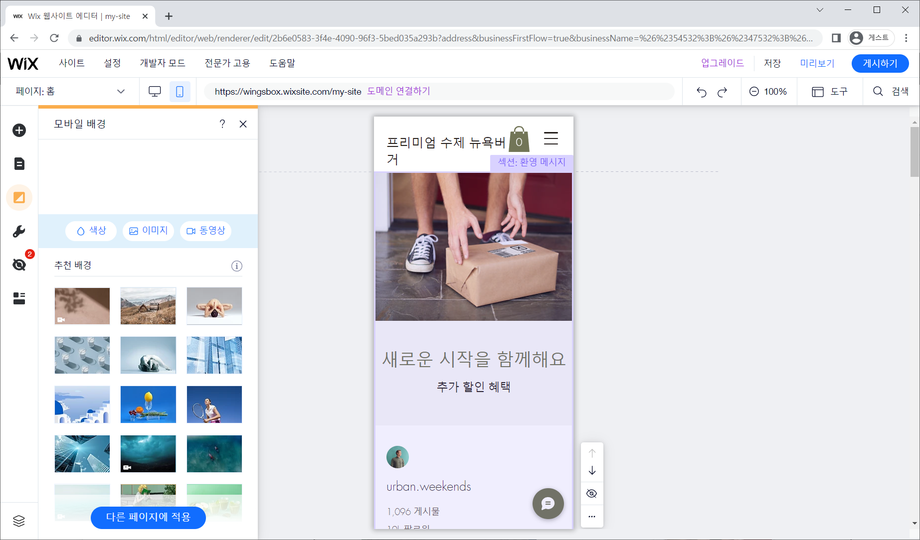요즘은 모바일 사이트도 필수입니다. 반응형 앱처럼 모바일 환경에 맞는 페이지 제작도 필요한데, 생각보다 힘든데 Wix에서는 손쉽게 가능합니다.