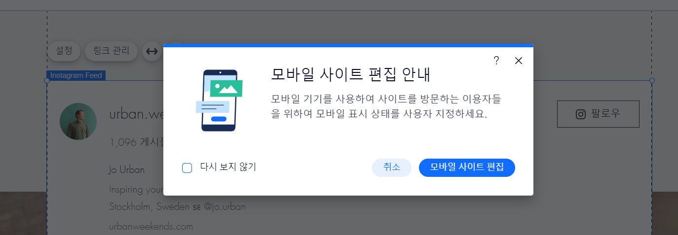 모바일 페이지의 상세한 설정은 편집기에서 상세 설정이 가능합니다.