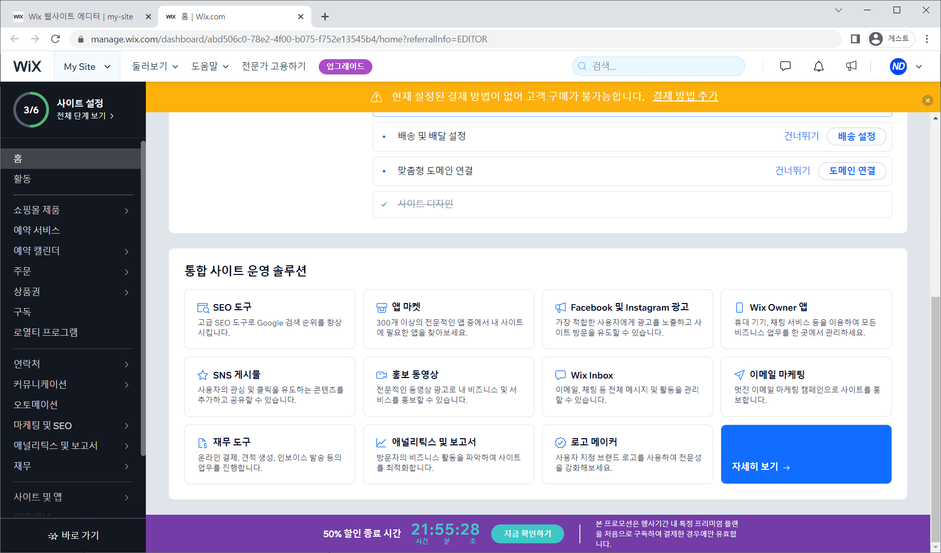 윅스(WIX) 웹사이트 만들기 : https://ko.wix.com/ecommerce/website
