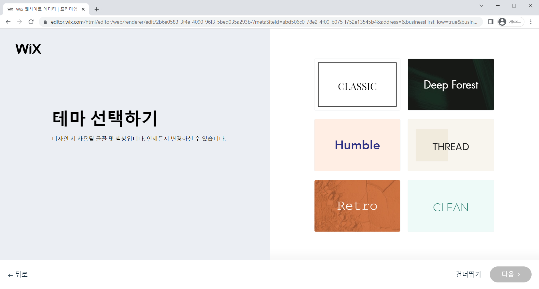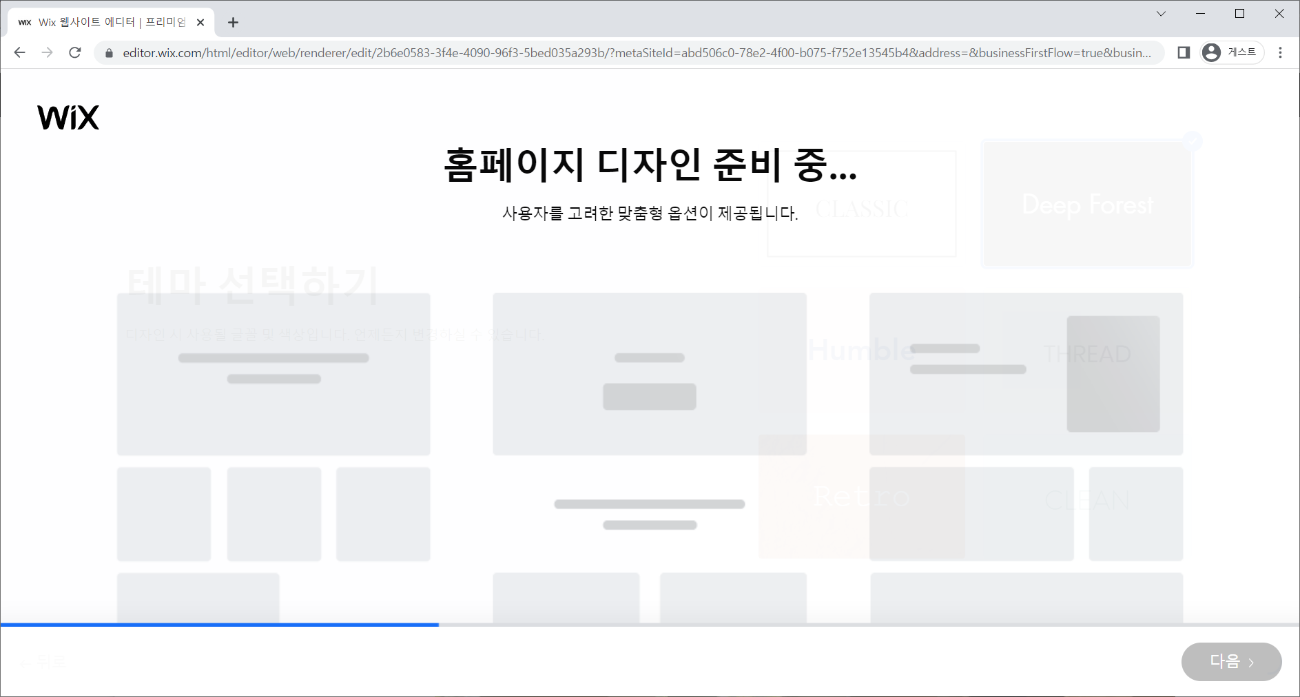 테마 선택을 하면 어느 정도 시간 후 적용됩니다. 디자인을 선택하여 조금 더 커스텀마이징이 됩니다.