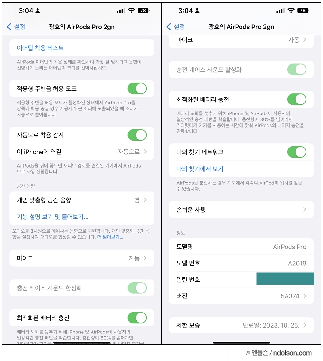 헤드셋도 좋지만, 지하철 출퇴근이라 간편함을 원해 에어팟 프로를 즐겨쓰고 있습니다. 에어팟 프로에서 2세대로 업그레이드는 굳이 할필요 없지만, 보증이 만료되었고 고장이 났다면 교체할 필요가 있다고 생각합니다. 에어팟 착용 후 뒤에서 귀를 밀어 삐~ 소리가 나면 애플 AS가 필요한 제품이라고 합니다. 참고하시고요.