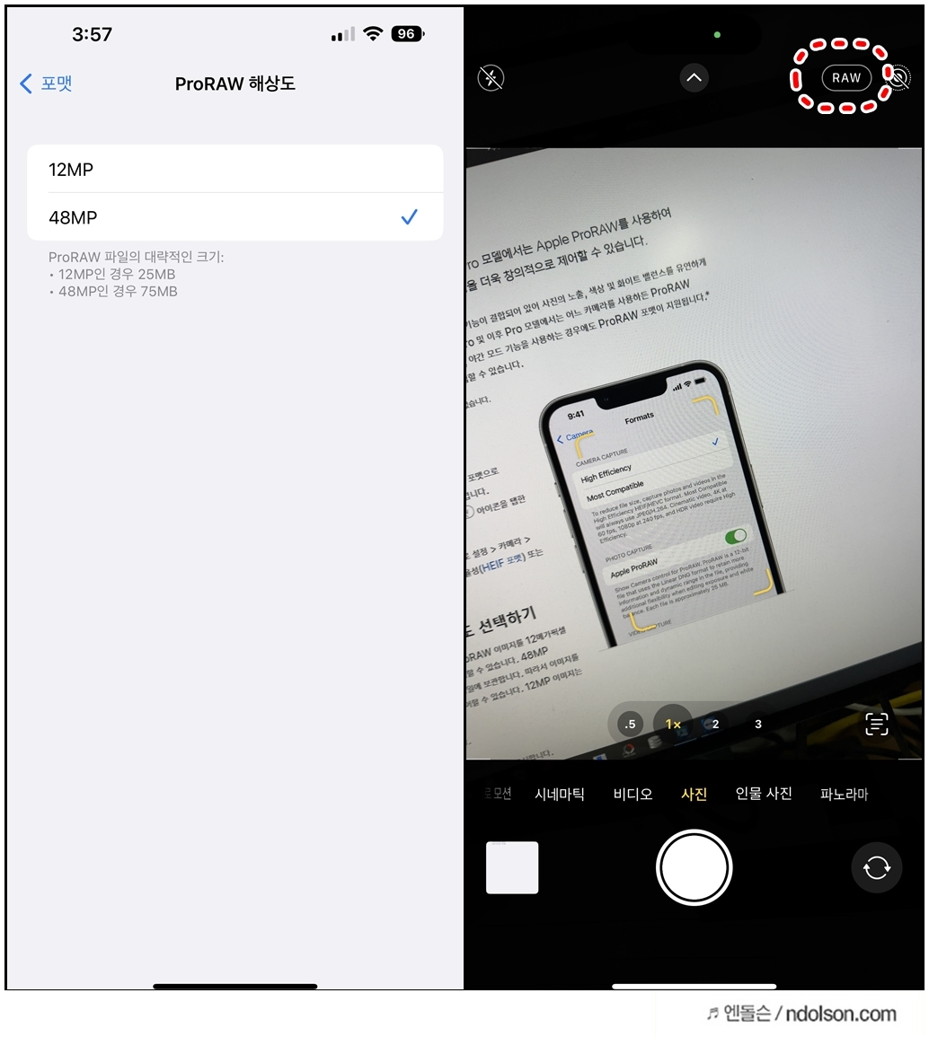 아이폰14 프로에서 ProRAW 사진을 12MP 및 48MP로 찍을 수 있습니다.