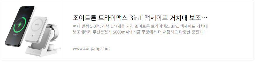 3만원대에 맥세이프와 보조배터리 + 거치대를 즐길 수 있는 2 in 1 제품입니다. 해외직구로 구매되지만, 배대지가 필요 없고 무료배송으로 받을 수 있습니다. USB-C 충전의 12W 출력과 20W 충전이 가능한 보조배터리로 스탠드 기능까지 고려하신다면 P05ZM 보조배터리가 구매하기 좋은 제품이라고 생각됩니다.